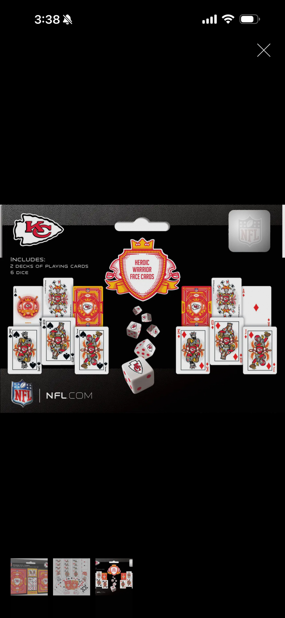 Who says you can't bring the casino to your next game night? These Officially Licensed NFL Kansas City Chiefs 2-pack playing card and dice sets are perfect for any game night. The high-quality Casino Style Cardstock playing cards are perfect for any fan of the Kansas City Chiefs. The deck features a unique team design and comes with a 6-piece 16mm D6 gaming dice set. Whether you're playing some poker or trying to beat the dealer at blackjack, these cards will help you do it in style. So roll the dice and get ready to bet big, because, with this set, you're going to win big. Go Team!