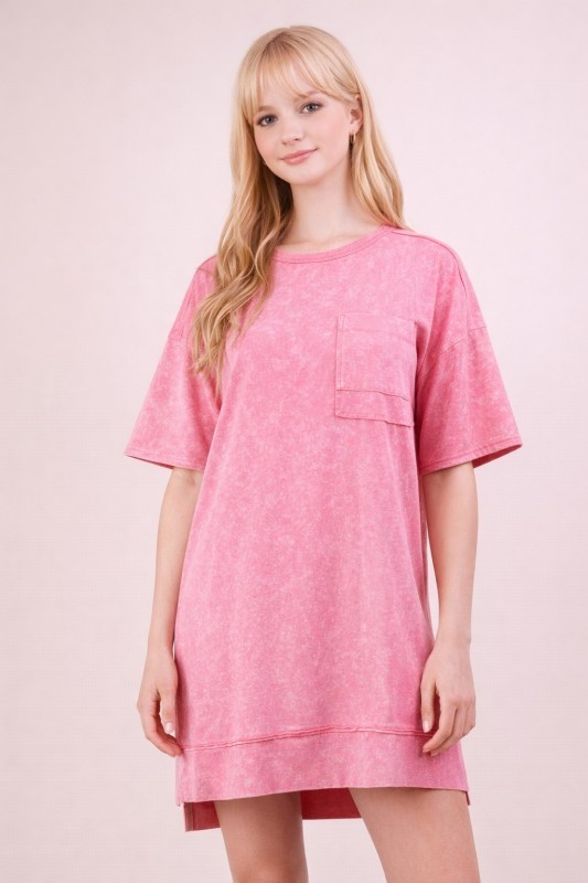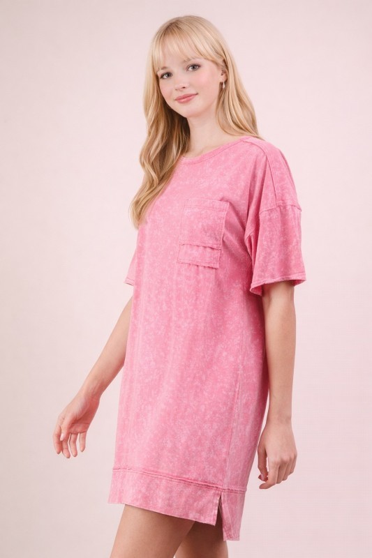 Pink Mineral Washed Shift Mini Dress