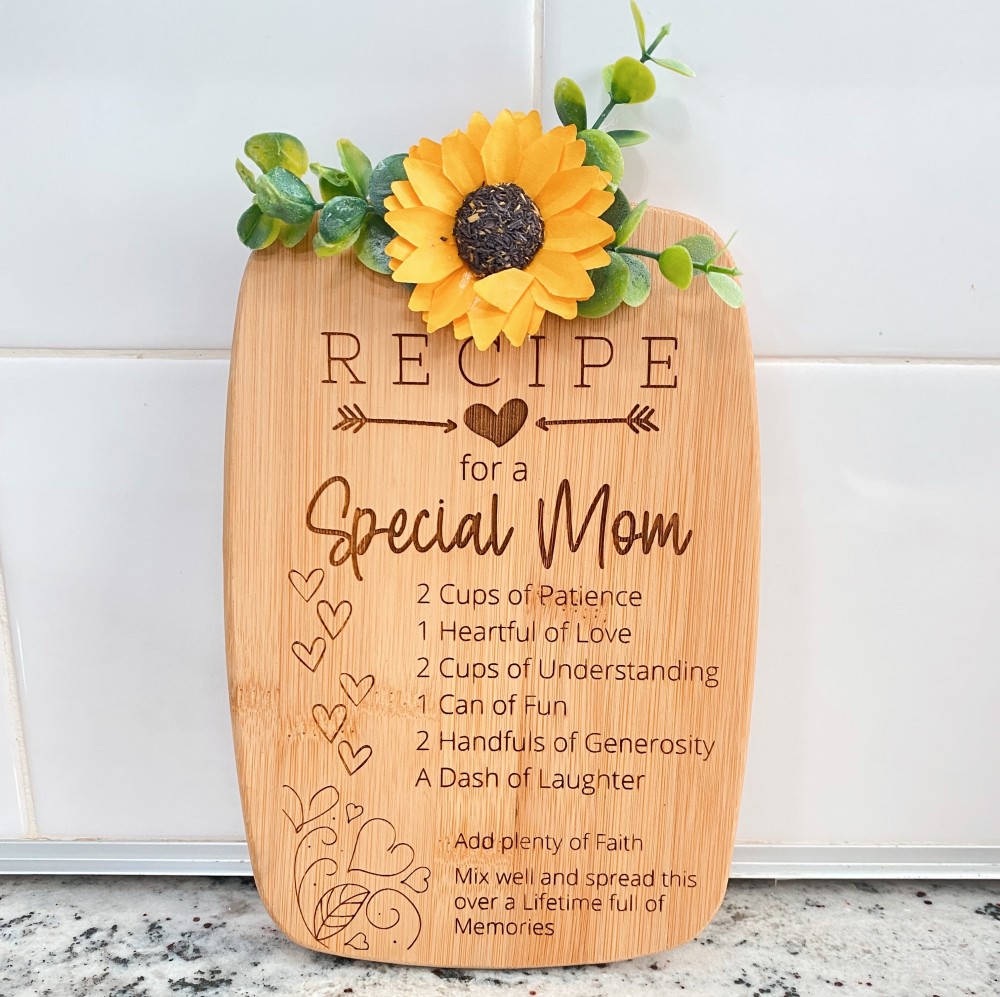 Engraved Wood board with special mom message and floral accents