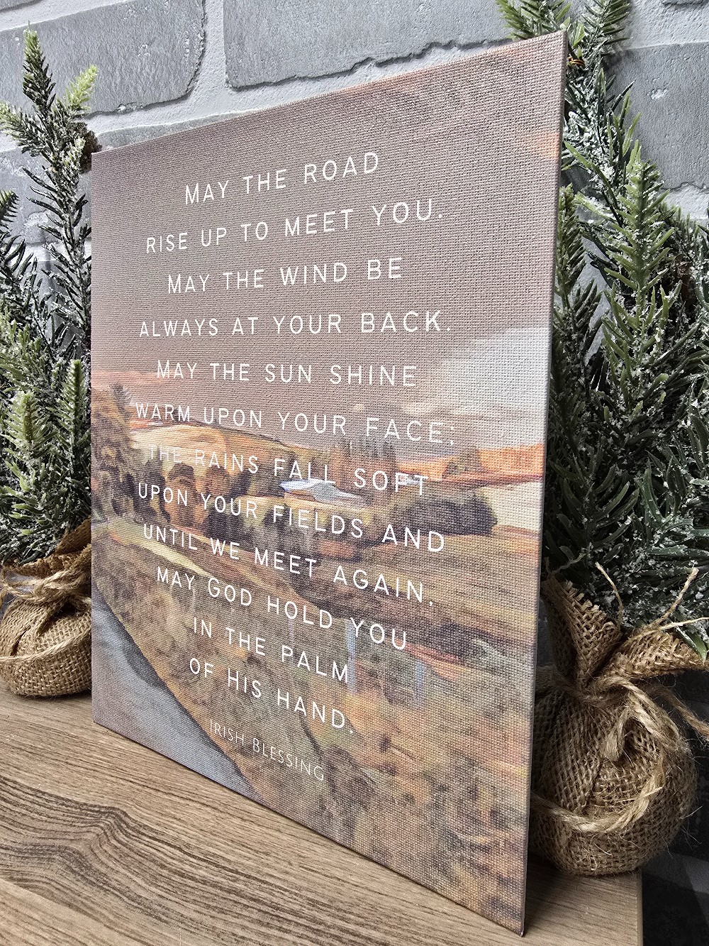 Peaceful and full of heartfelt meaning, this Irish Blessing Canvas features the beloved traditional blessing set against a softly painted countryside landscape. Warm earth tones and gentle brushstrokes create a calming backdrop that allows the words to take center stage, making this piece both beautiful and deeply comforting.