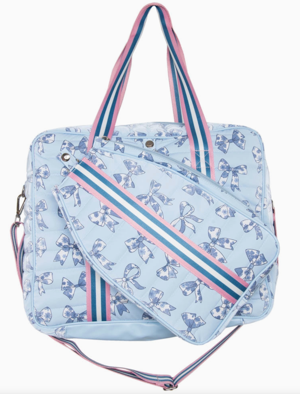 Our pickleball tote bag is basically an accessory AND a teammate! The tote bag keeps gear organized with a dedicated paddle sleeve, multiple inside pockets, two shoulder straps, plus a long adjustable strap for all the carry options. Durable and super easy to wipe clean, this bag is a game-changer for players who love bold colors, convenience, and low-maintenance style. Perfect for the pickleball pro or newbie who wants to shine on the court!