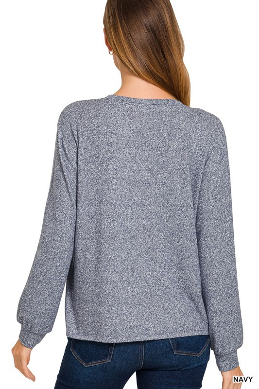 Wrap yourself in cozy vibes with this Soft Touch Brushed Hacci Long Sleeve Tee. Featuring a relaxed fit and a comfy round neckline, it’s perfect for chill days or layering up in style. Soft, snuggly fabric means you’ll never want to take it off!