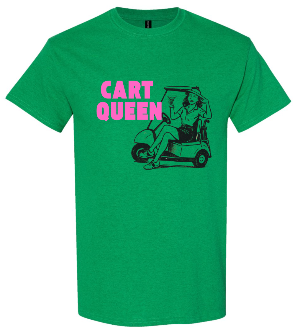 The Cart Queen Tee is your go-to golf essential, designed for comfort and style on the course. Available in vibrant pink or green, this tee combines performance with personality. Whether you're perfecting your swing or enjoying a casual round, this versatile piece keeps you looking sharp while you play. Choose your color and elevate your golf game.