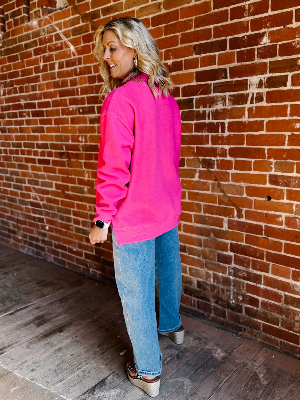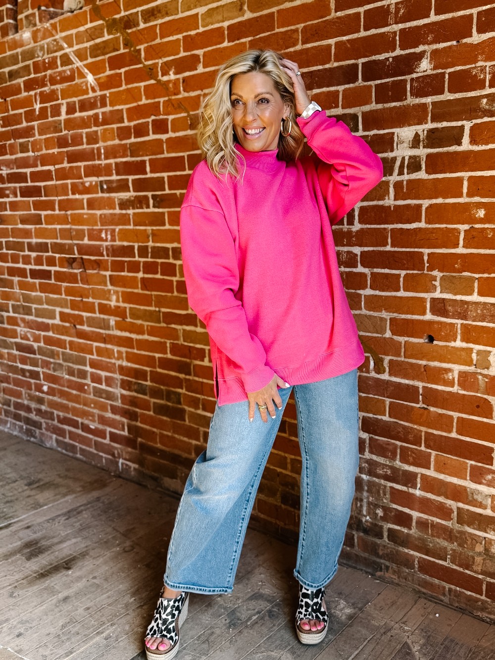 Bold color. Zero effort. The Pink Theory Reversible Mock Neck Pullover is the kind of cozy statement piece that instantly lifts your mood and your outfit. Designed with a soft fleece interior, relaxed oversized fit, and an easy mock neckline, this pullover brings comfort-first energy without sacrificing style.