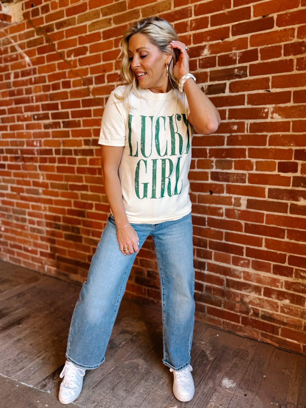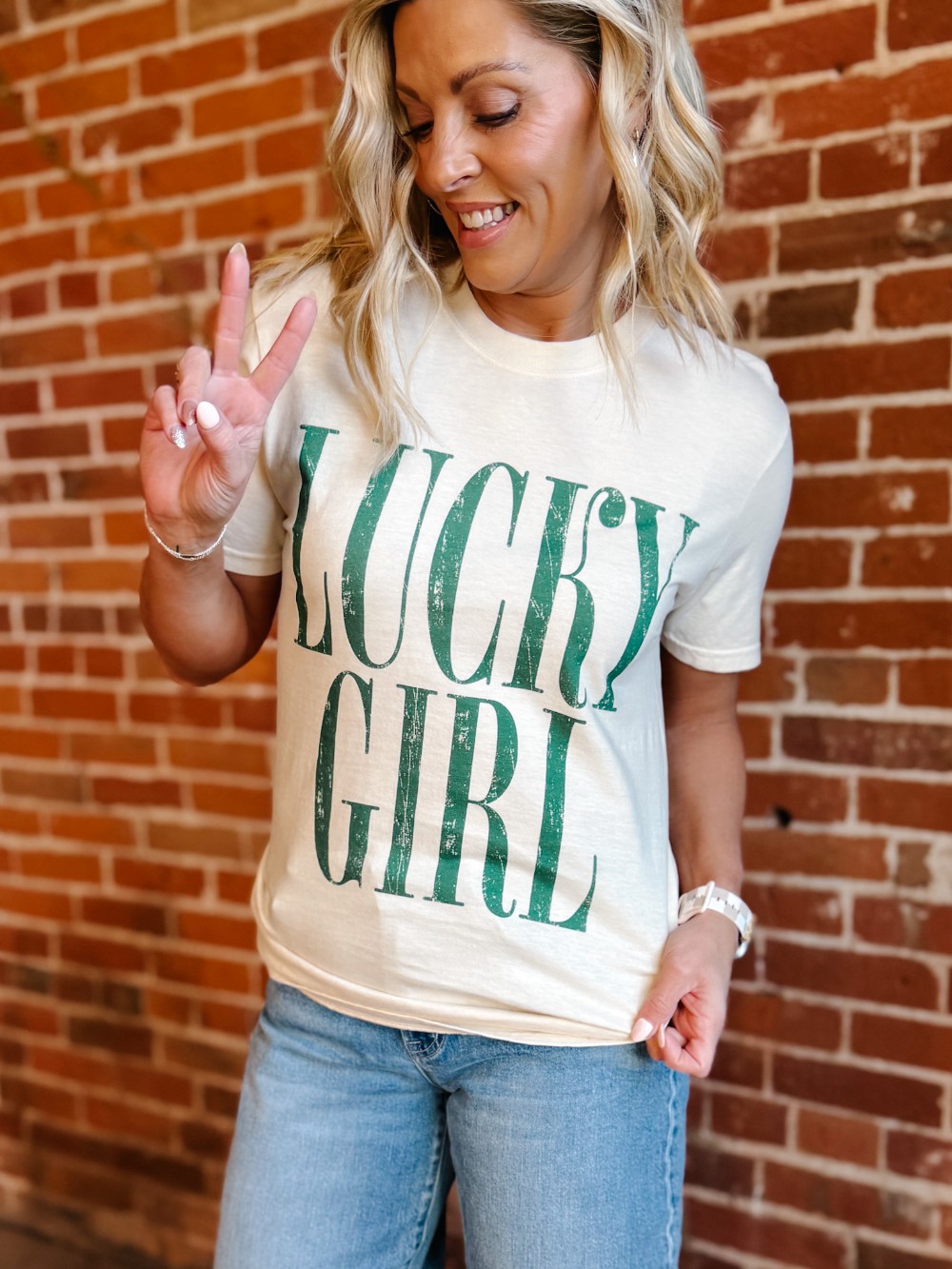 Simple, bold, and quietly confident. The Lucky Girl Graphic Tee is one of those wear-on-repeat pieces that just works. With clean typography, a lightly distressed finish, and that perfectly broken-in Comfort Colors feel, it delivers effortless cool with a feel-good message. Easy to style, easy to love, and lucky in all the right ways.