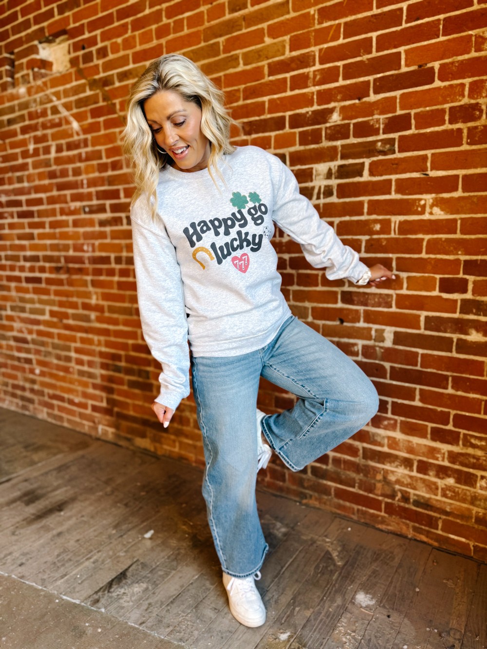 A little luck, a little charm, and a whole lot of cozy. The Happy Go Lucky Graphic Sweatshirt is one of those feel-good pieces you reach for when you want comfort with personality. Soft, relaxed, and sprinkled with playful lucky icons, it’s the kind of sweatshirt that instantly lifts your mood and makes even an errand run feel fun.