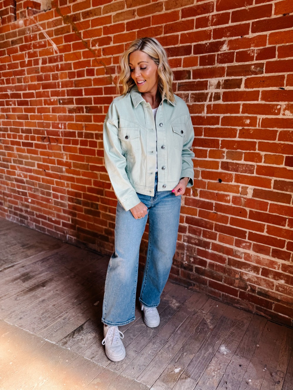That effortless “I just threw this on” layer—with a little Western soul and a whole lot of cool. The Soft Lines Cotton Twill Trucker Jacket brings a fresh, spring-ready feel thanks to its pastel cotton twill and perfectly slouchy fit. Exaggerated yoke detailing and subtle back pleats nod to classic Western style, while the cropped length and washed finish keep it modern and wearable. It’s the kind of jacket that finishes the outfit without trying too hard.